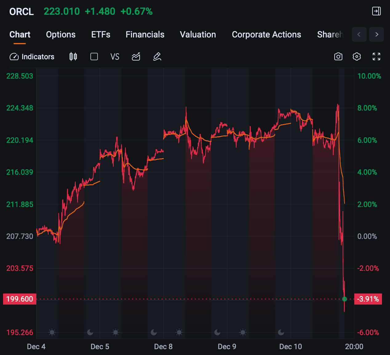 Oracle $ORCL ( ▼ 12.43% ) was falling 10$ post-market, and it had nothing to do with the raw numbers. The software cloud company showed revenue of $16.3 billion, right around forecasts, and it wasn’t enough.