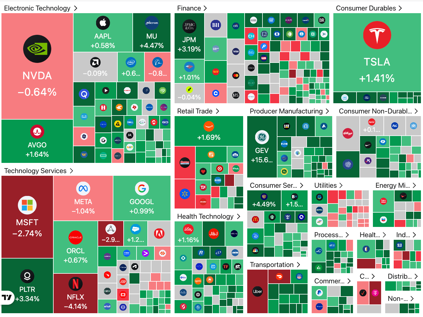 Adobe $ADBE ( ▲ 3.3% ) climbed just slightly. The Photoshop digital media leader beat expectations across the board, posting non-GAAP earnings of $5.45 per share on Q4 revenue of $6.2 billion. The company provided robust guidance for fiscal 2026 through the strong monetization of its Generative AI features.