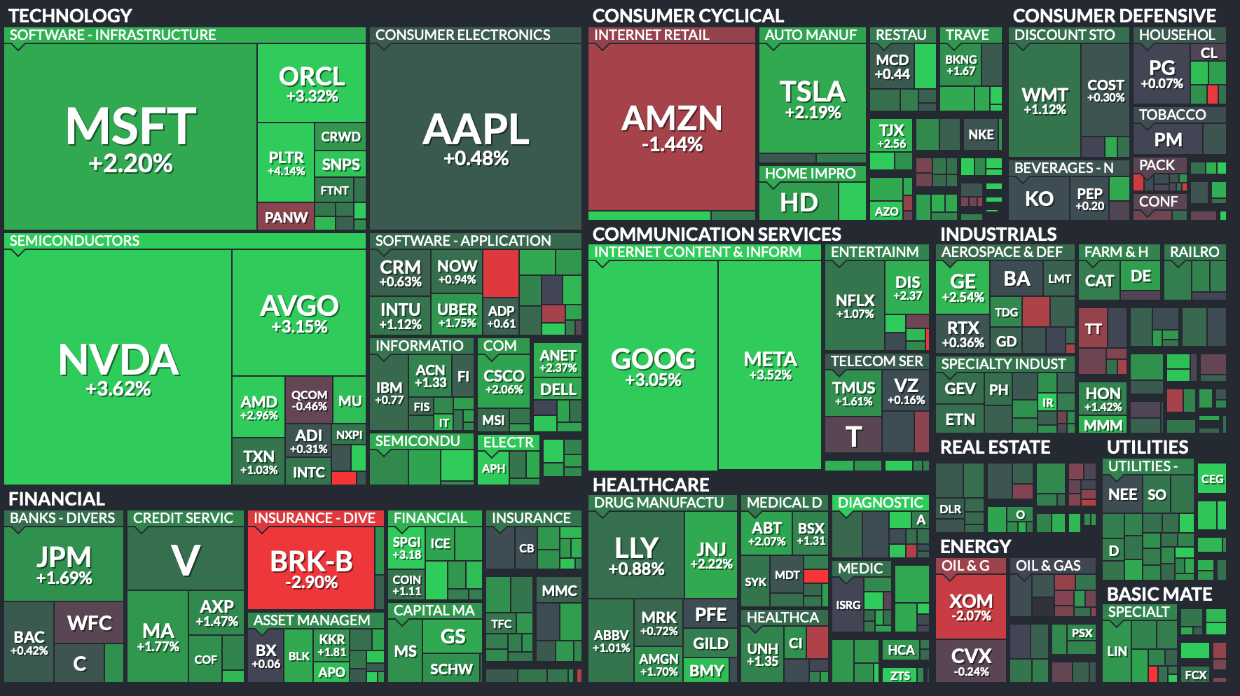 With the final numbers for indexes and the ETFs that track them, 10 of 11 sectors closed green, with tech $XLK ( ▼ 2.63% ) leading and energy $XLE ( ▼ 1.82% ) lagging.