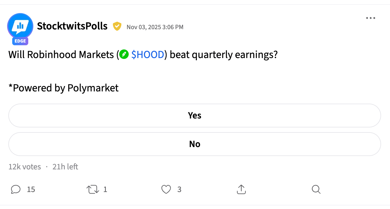 Robinhood $HOOD ( ▼ 6.99% ) is expected to report Q3 2025 earnings of $0.51–$0.61 per share on revenue of approximately $1.19–$1.22 billion.