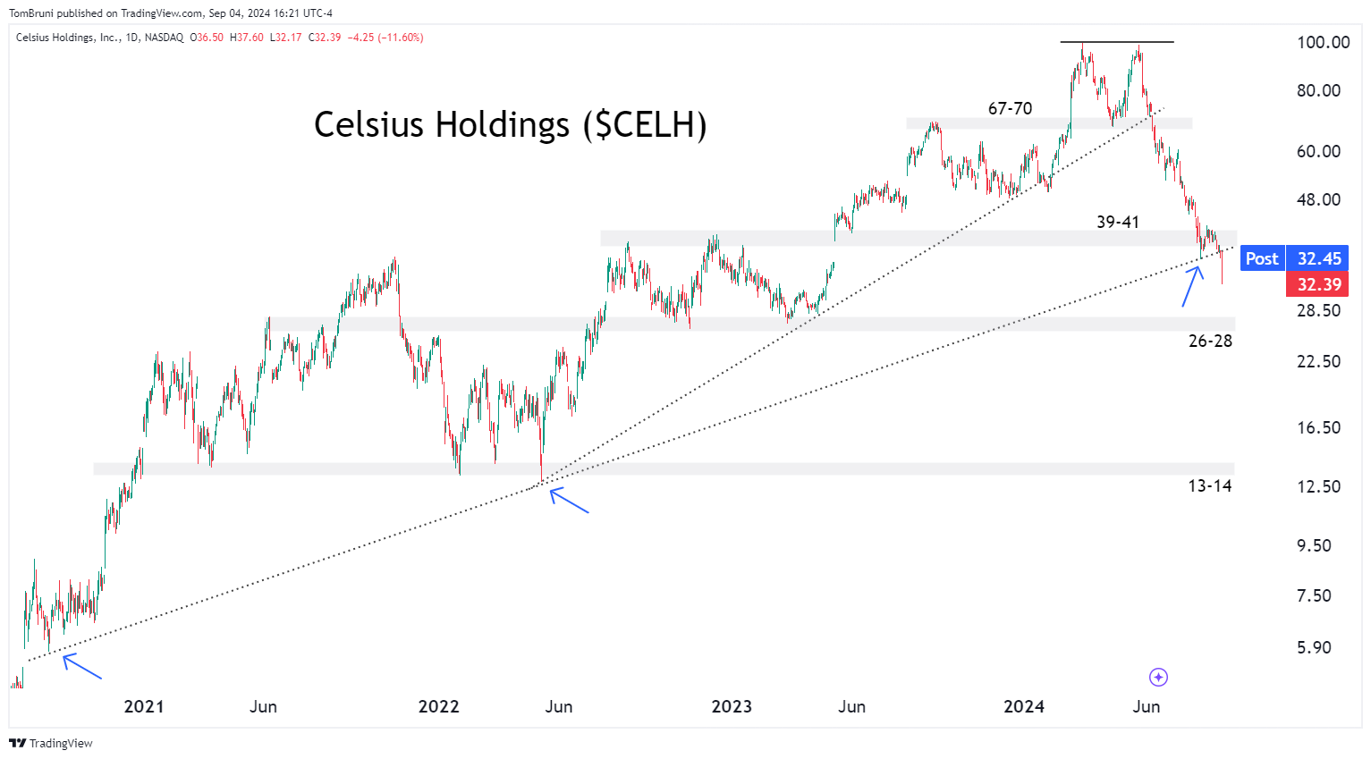Energy drink maker Celsisus is a case study of what happens to growth stocks when they lose their initial momentum.