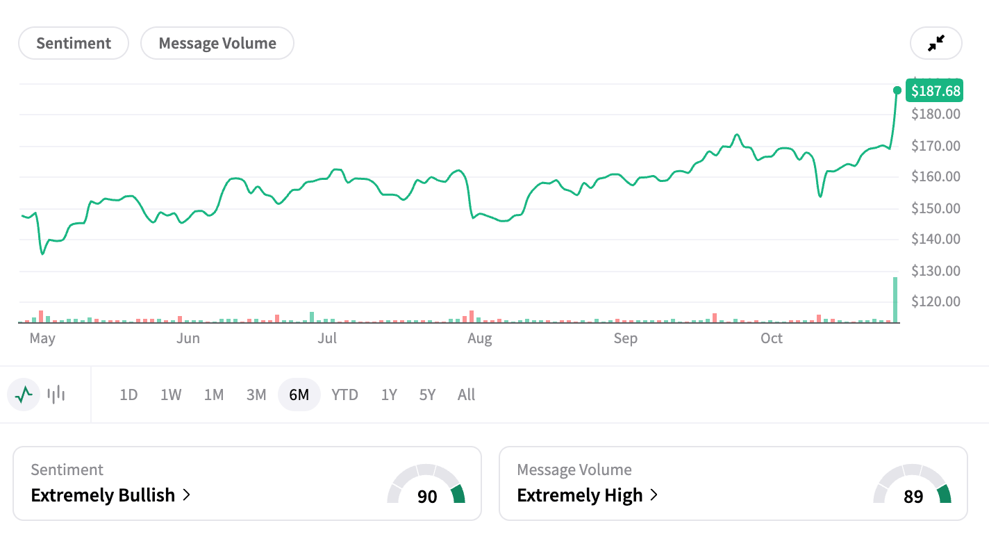 $GOOG ( ▲ 3.62% ) and its brother $GOOGL ( ▲ 3.6% ) were up, trending higher on Stocktwits before this week’s earnings report.