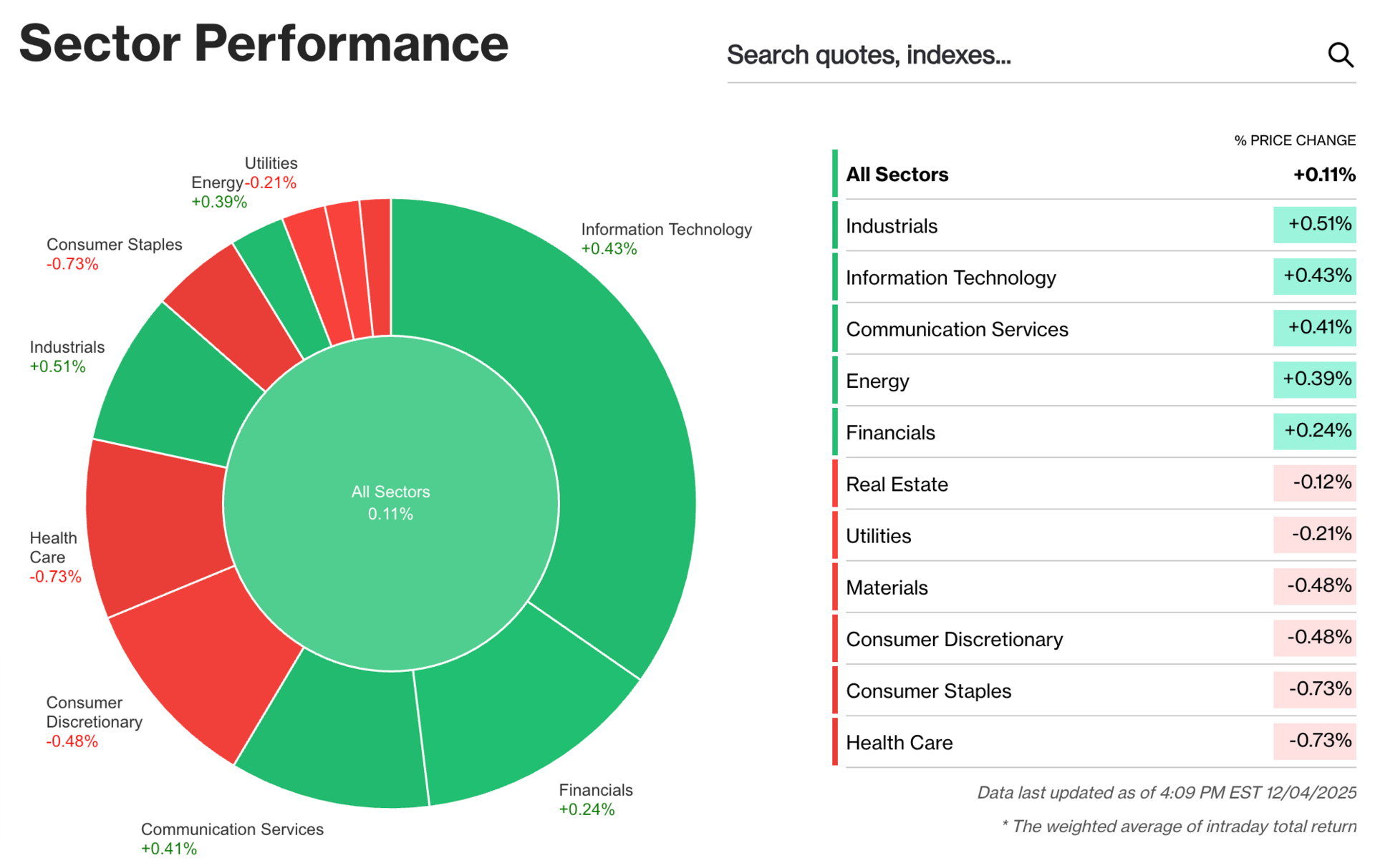 The market closed higher Thursday, but only barely. The S&P 500 came within 100 points of an all-time high, finally seeming to get November out of its system.