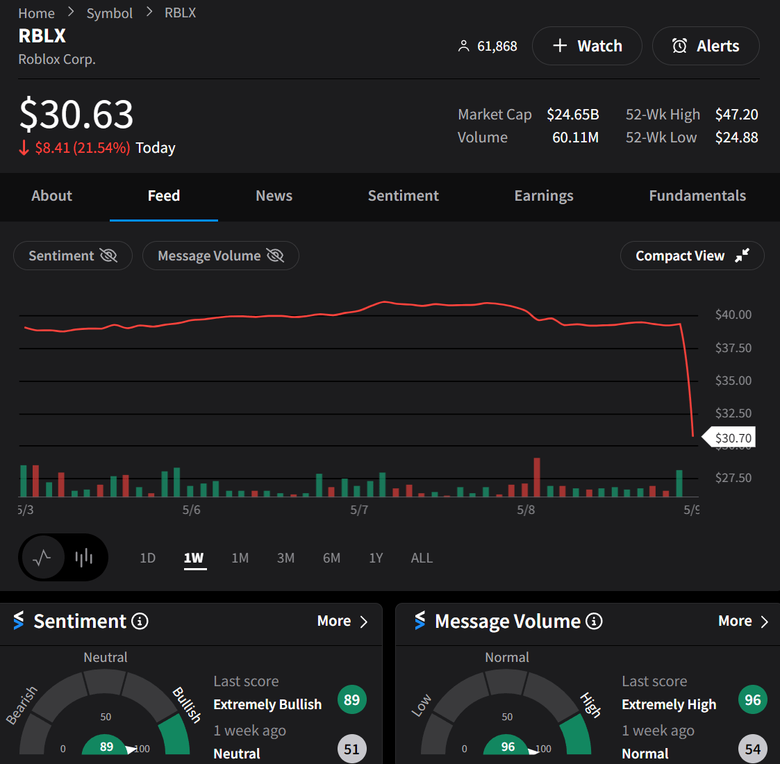 $RBLX slashed its annual bookings forecast, leading to a 23% drop in shares—its steepest decline in over two years.