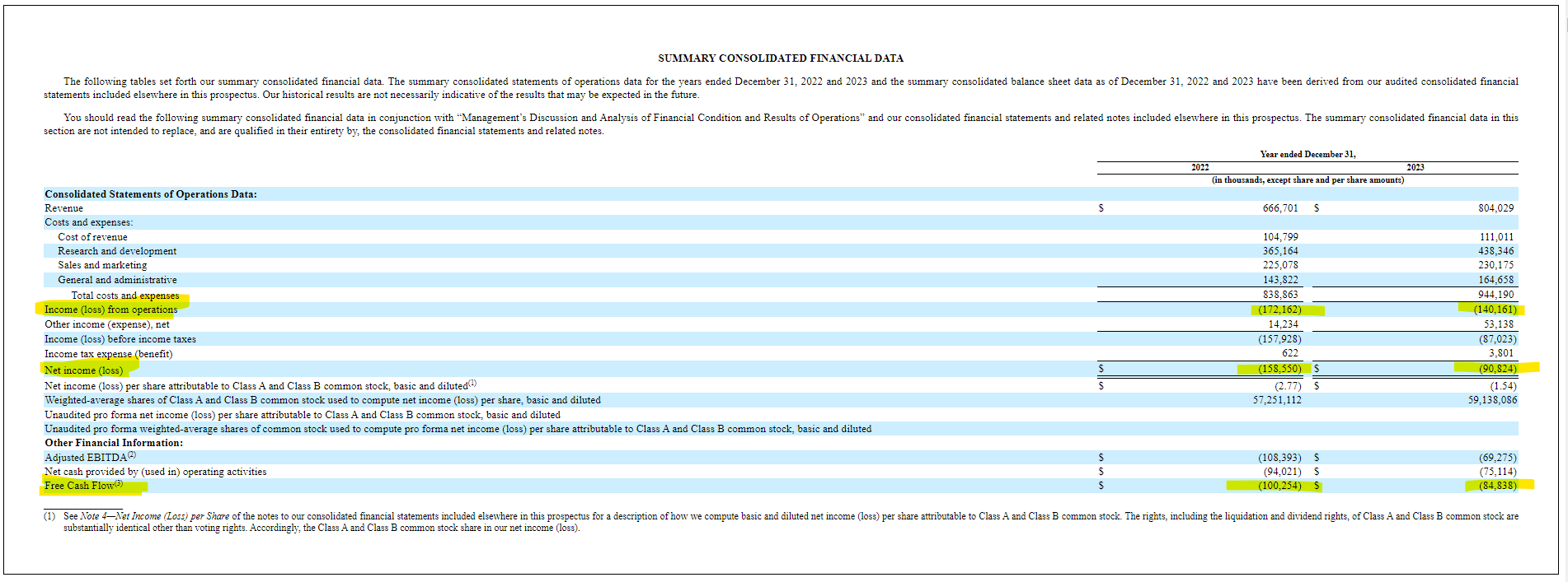 However, the bears were quick to point out that the stats that matter are its financials, which leave a lot to be desired. The summary of its financial data shows the company posted losses from operations and negative free cash flow for the last two years. And if a company can't generate cash from operations...it'll get it from investors (or debt). 💸