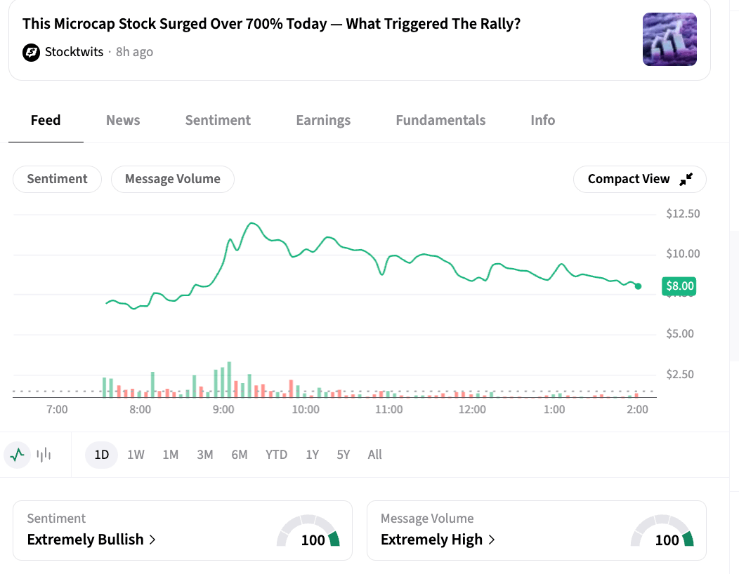 Securities Disclaimer: STOCKTWITS IS NOT A TAX ADVISOR, BROKER, FINANCIAL ADVISOR OR INVESTMENT ADVISOR. THE SERVICE IS NOT INTENDED TO PROVIDE TAX, LEGAL, FINANCIAL OR INVESTMENT ADVICE, AND NOTHING ON THE SERVICE SHOULD BE CONSTRUED AS AN OFFER TO SELL, A SOLICITATION OF AN OFFER TO BUY, OR A RECOMMENDATION FOR ANY SECURITY. Trading in such securities can result in immediate and substantial losses of the capital invested. You should only invest risk capital, and not capital required for other purposes. You alone are solely responsible for determining whether any investment, security or strategy, or any other product or service, is appropriate or suitable for you based on your investment objectives and personal and financial situation. You should also consult an attorney or tax professional regarding your specific legal or tax situation. The Content is to be used for informational and entertainment purposes only and the Service does not provide investment advice for any individual. Stocktwits, its affiliates and partners specifically disclaim any and all liability or loss arising out of any action taken in reliance on Content, including but not limited to market value or other loss on the sale or purchase of any company, property, product, service, security, instrument, or any other matter. You understand that an investment in any security is subject to a number of risks, and that discussions of any security published on the Service will not contain a list or description of relevant risk factors. In addition, please note that some of the stocks about which Content is published on the Service have a low market capitalization and/or insufficient public float. Such stocks are subject to more risk than stocks of larger companies, including greater volatility, lower liquidity and less publicly available information. Read the full terms & conditions here. 🔍