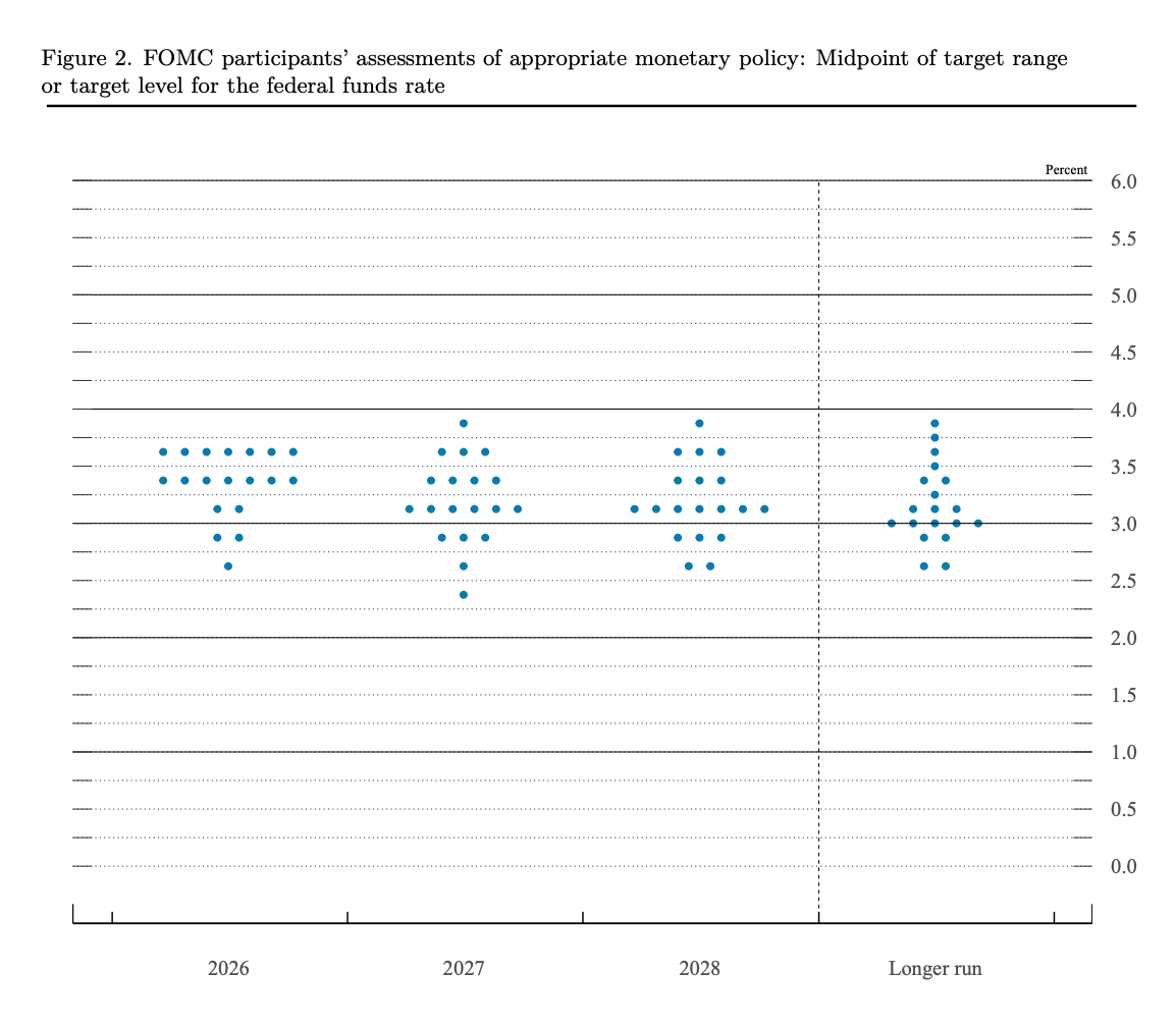 The dot plot technically still shows two cuts this year, which B. Riley's Art Hogan called "slightly less hawkish than anticipated," and Goldman Sachs Asset Management said there is still room for two normalization cuts depending on the conflict's duration. The fine print is less reassuring. The inflation forecast was revised up to 2.7% from 2.4%. Powell explicitly said the Iran war will push up near-term inflation, and Fed funds futures now price no realistic shot at a cut until December.
