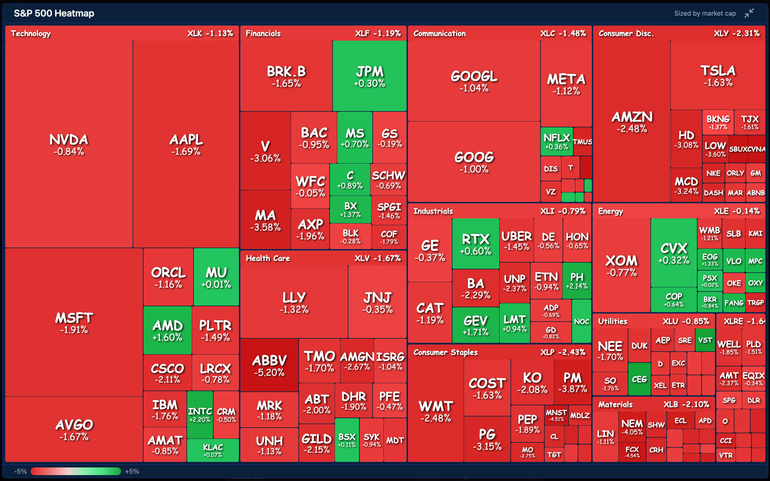 The sell off swept the indexes. Not even energy escaped, finishing the day's worst-performing group alongside consumer staples, which dropped -2.4%. Bitcoin fell -4% to $71k as risk appetite evaporated the moment Powell started talking. The dot plot technically still shows around one-two cuts this year, but fed funds futures are now pricing no realistic shot at a move until December.