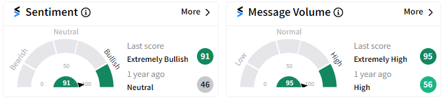 Shares fell 13% on the day, but Stocktwits sentiment surprisingly sits in ‘extremely bullish’ territory as the community debates the bull case. 🤔