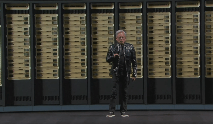 Each shelf of two massive chips can process 200TB/sec, two times the speed of the GLOBAL internet usage of 100TB/sec, Huang said.