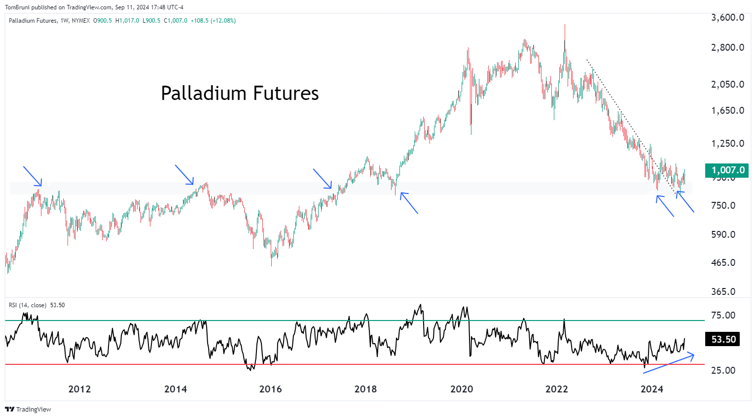Overall, analysts say these signs point to the slow but gradual reversal of this market’s downtrend into a new uptrend. Palladium futures are one way to play it, but traders are also looking to leverage commodity ETFs like $PALL and mining stocks with exposure to the commodity. ⚒️