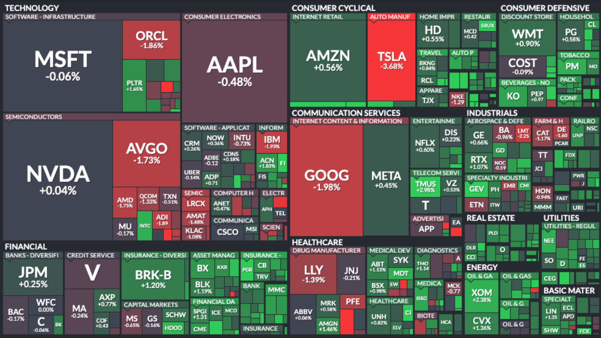 Tesla $TSLA ( ▼ 3.68% ) slipped after shareholders approved Elon Musk’s $1T pay package, contingent on hitting an $8T market cap and deploying robo fleets. $XYZ ( ▼ 7.73% ) sank on weak crypto sales, $TTWO ( ▼ 8.08% ) declined after another GTA 6 delay, surprising no one at all. 🎮️