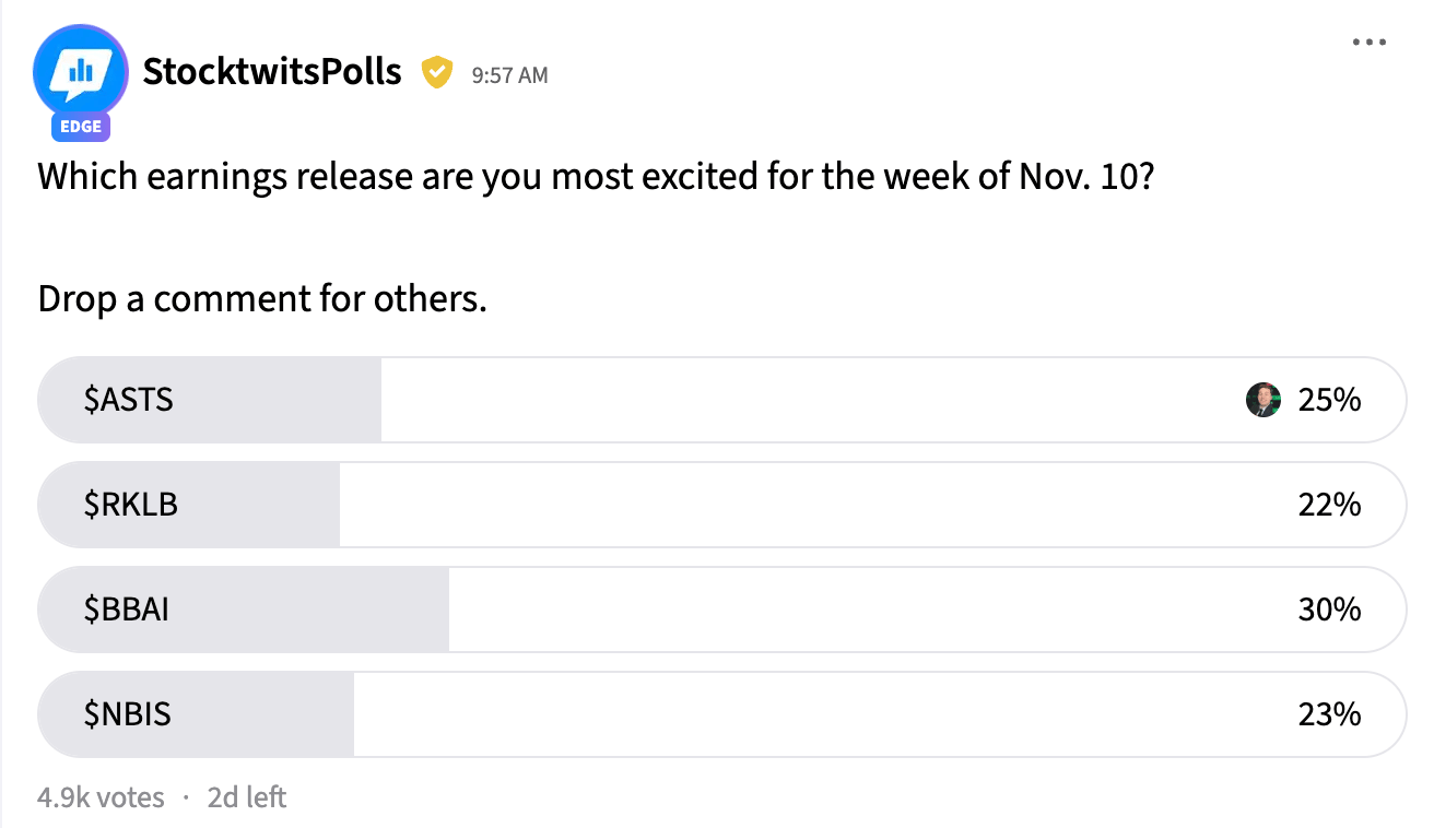 Analysts expect strong YoY growth driven by satellite deployment and STC Group prepayment. Options markets imply a ~19% move post-earnings.