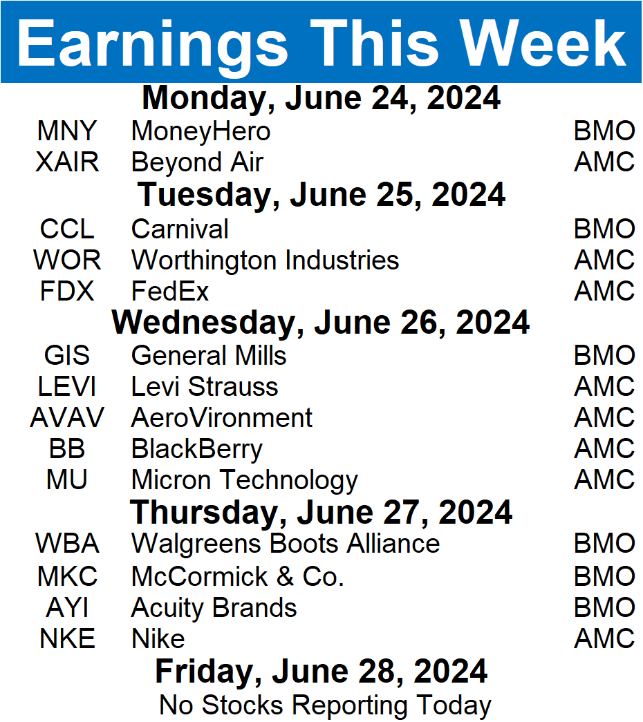 Earnings season has crawled to a halt, with 39 stocks reporting this week. Some tickers you may recognize are $MU, $NKE, $FDX, $CCL, and more.