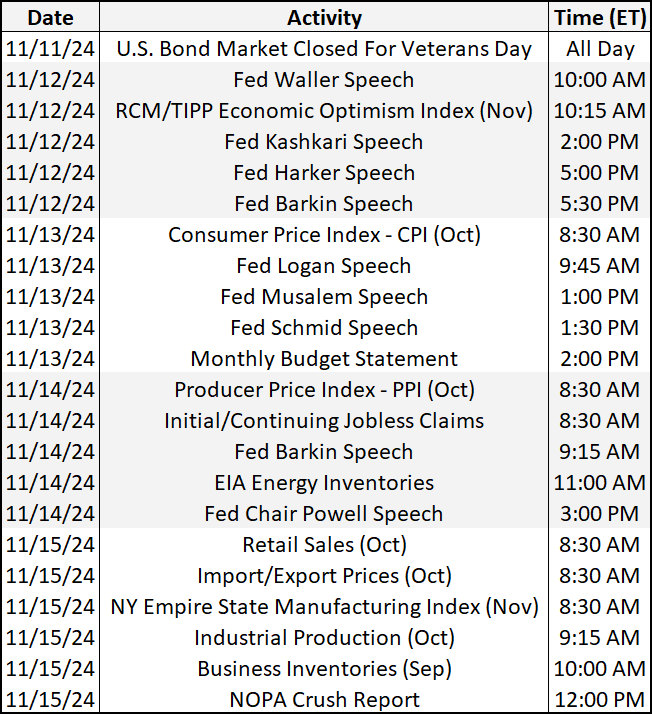 It’s a slower week of economic data, with investors focused on U.S. inflation data and Fed member speeches. In addition to the above, check out this week's complete list of economic releases.