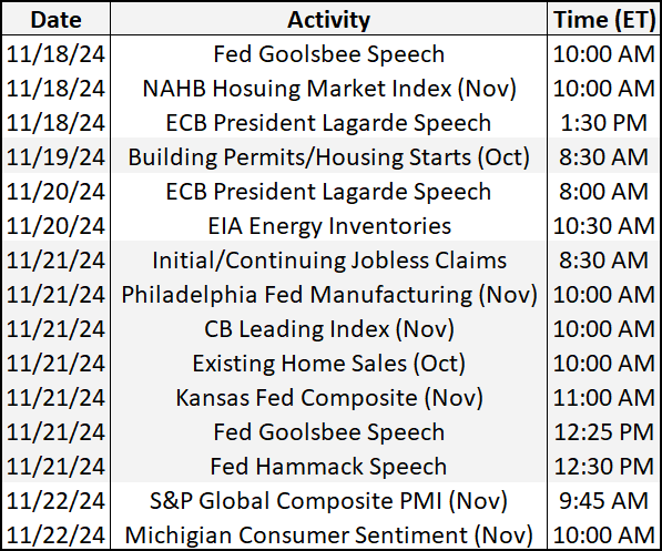 It’s a slower week of economic data, with investors focused on U.S. housing data and Fed member speeches. In addition to the above, check out this week's complete list of economic releases.