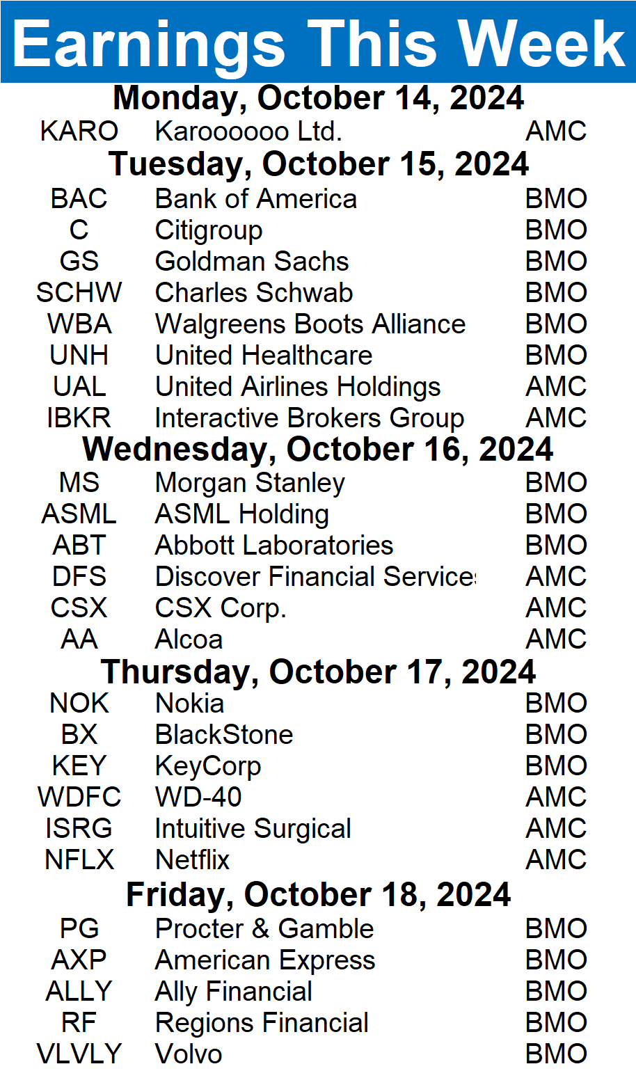 A new earnings season is officially underway, with 102 stocks reporting this week. Some tickers you may recognize are $BAC, $GS, $SCHW, and $NFLX.