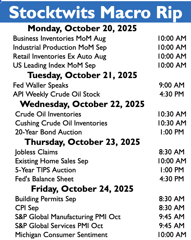 ◀️ Markets rebounded Monday as Trump walked back Friday’s China tariff threats, reviving hopes for a Xi meeting and sending tech, energy, and rare earth stocks higher. OpenAI inked a 10-gigawatt custom chip deal with Broadcom, fueling speculation around trillion-dollar AI infrastructure ambitions. Gold hit a record $4,078/oz, Bitcoin rose 3%, and Tesla climbed 5% on strong China sales. Nuclear and lithium names rallied on supply chain news, while big banks prepped for earnings with JPMorgan pledging $10B toward national security-linked investments. Volatility spiked, but sentiment turned bullish heading into Tuesday’s data and earnings barrage.